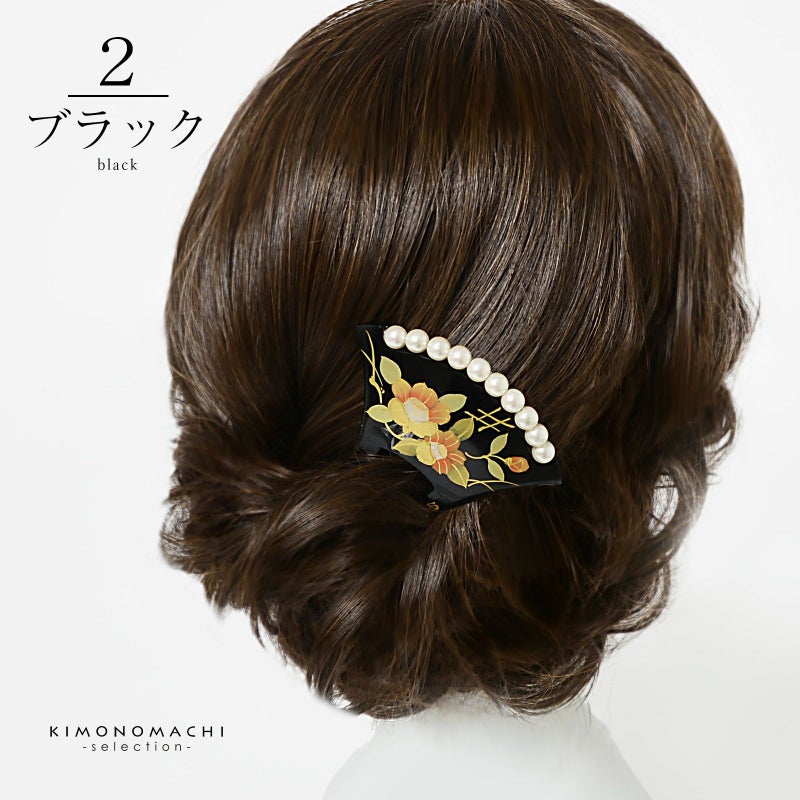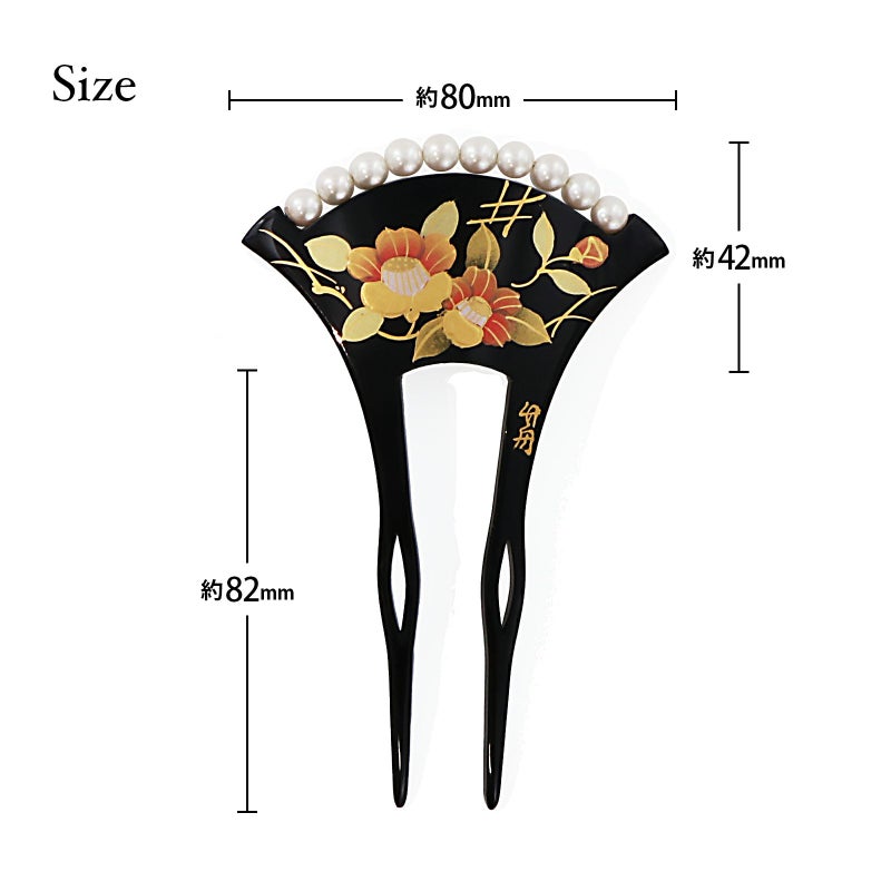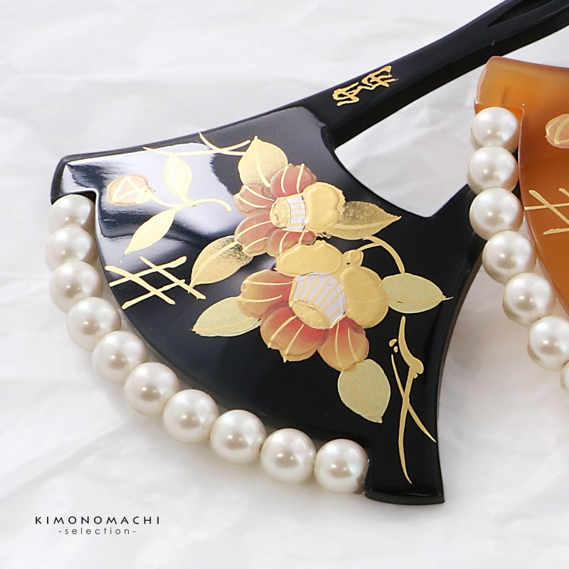 蒔絵風の模様、パールビーズの飾りが上品な煌びやかさ、華やかさがあります。