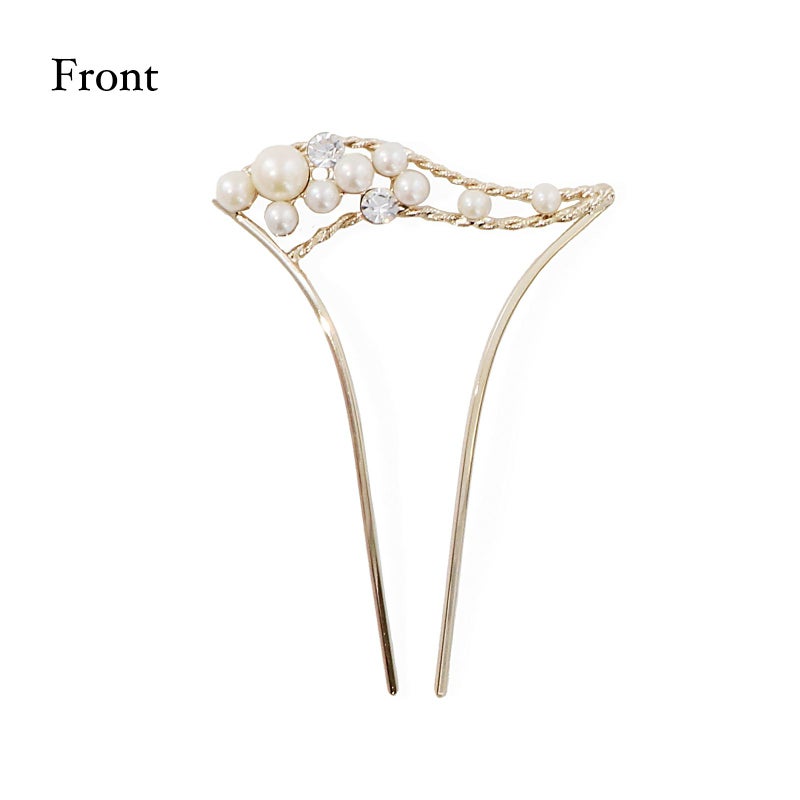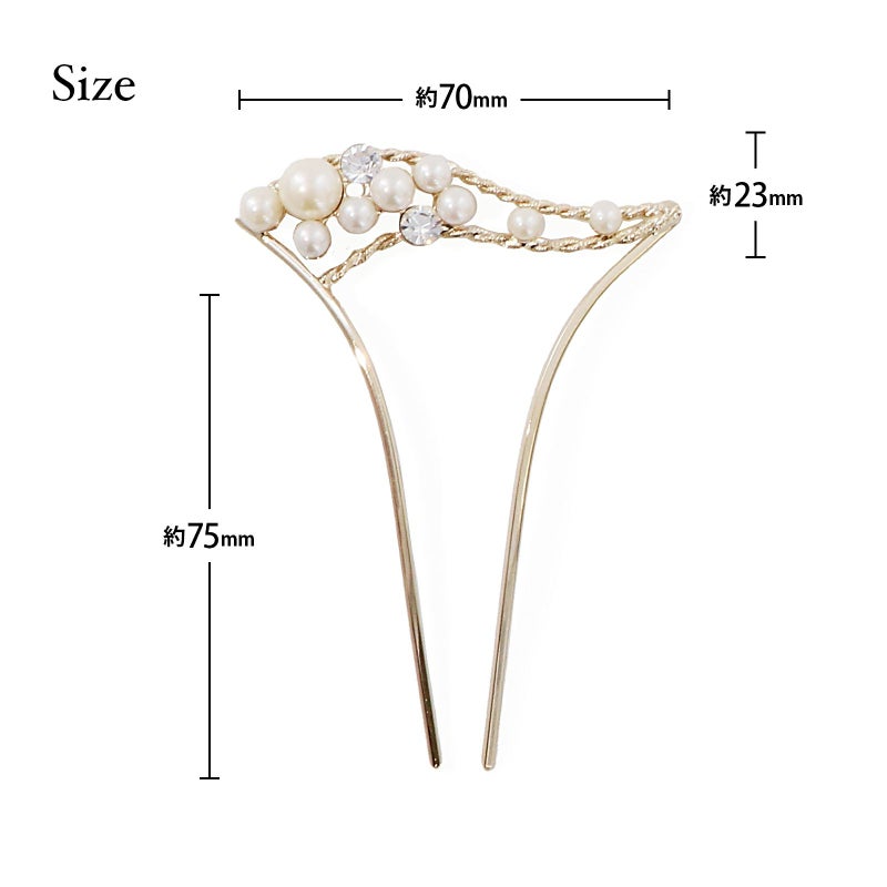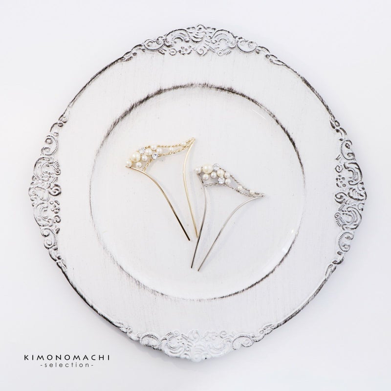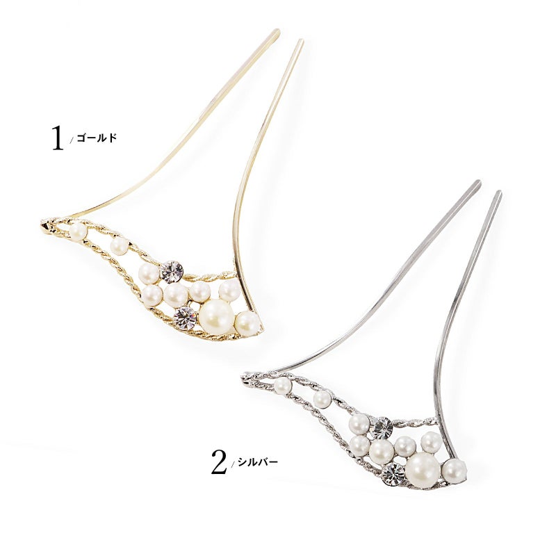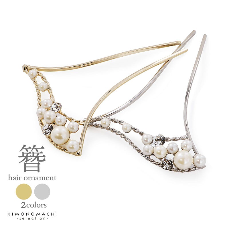髪飾り かんざし 単品「ゴールド・シルバー パール、ウェーブ」日本製 簪 日本髪 和装 着物 礼装 結婚式【メール便不可】
