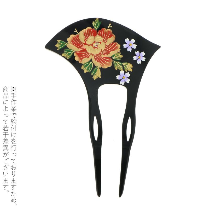 かんざし バチ型 「黒地 緋牡丹と桜 #631」 銀杏型 高級 簪 礼装用 フォーマル着物 和装 留袖 黒留袖 訪問着 色無地 結婚式 パーティー 【メール便不可】<H>