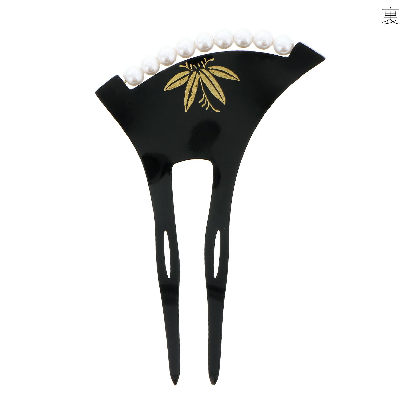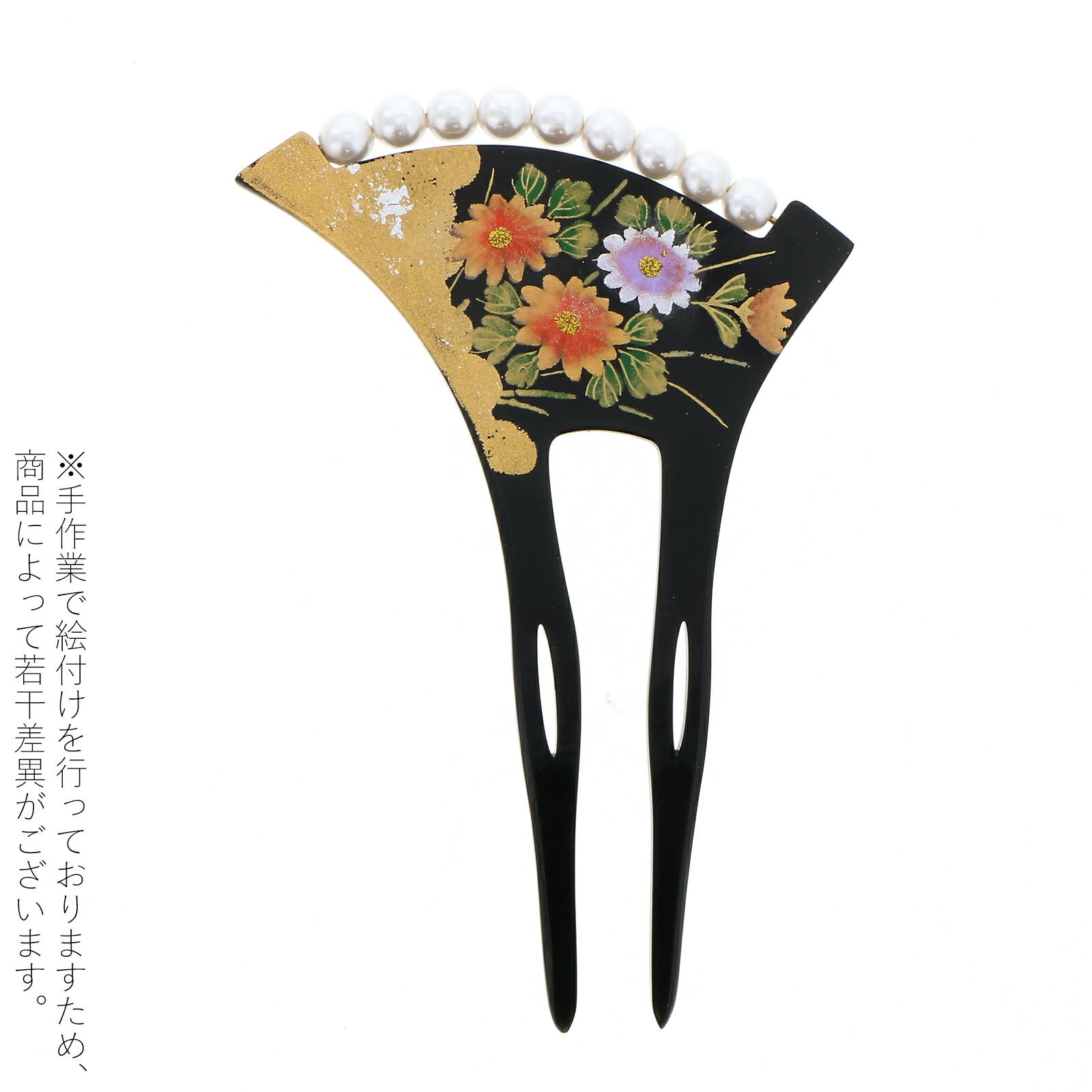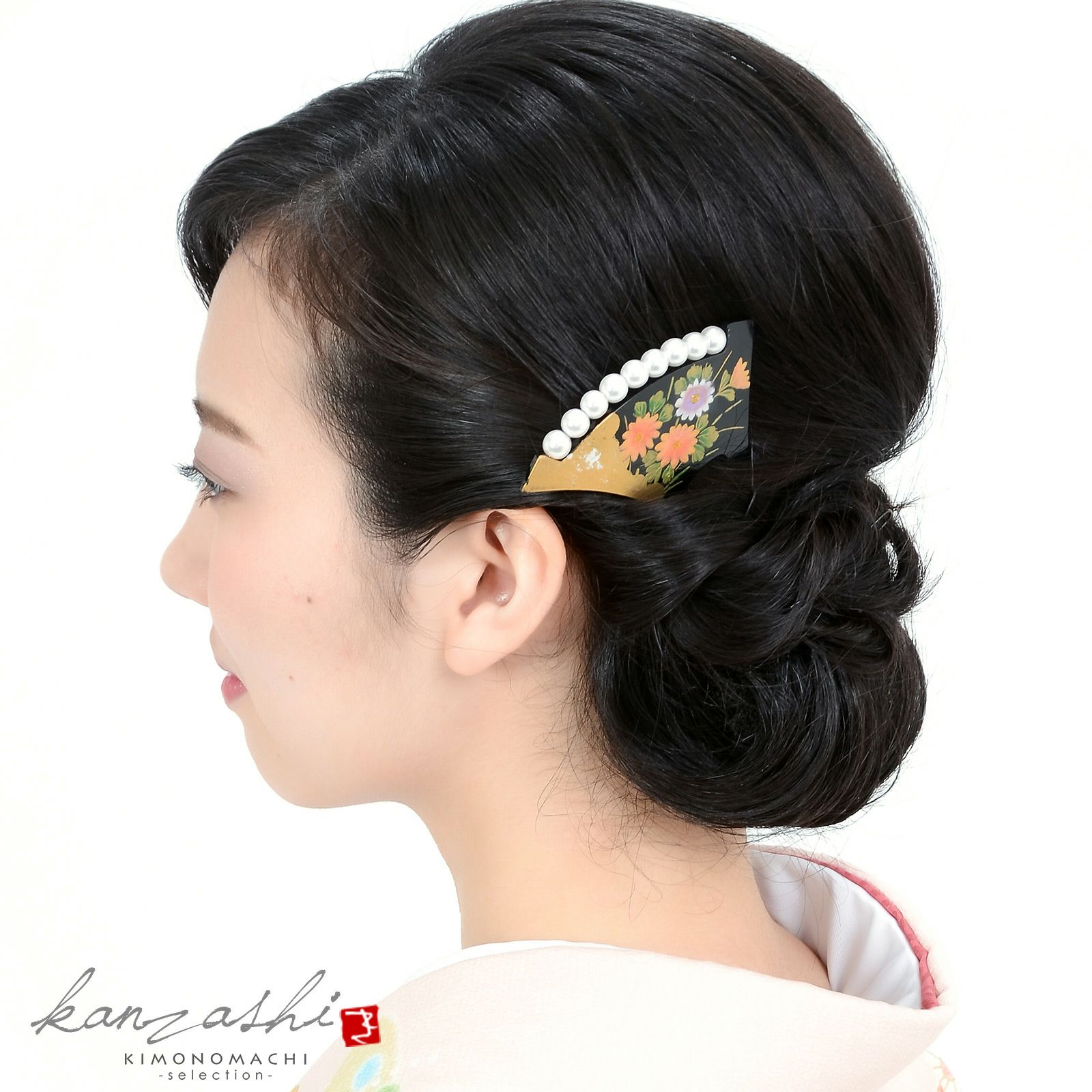 かんざし バチ型 「黒地 パール 菊 #801」 銀杏型 高級 簪 礼装用 フォーマル着物 和装 留袖 黒留袖 訪問着 色無地 結婚式 パーティー 【メール便不可】<H>
