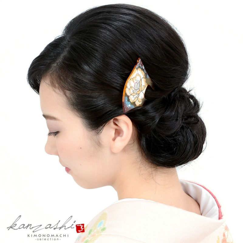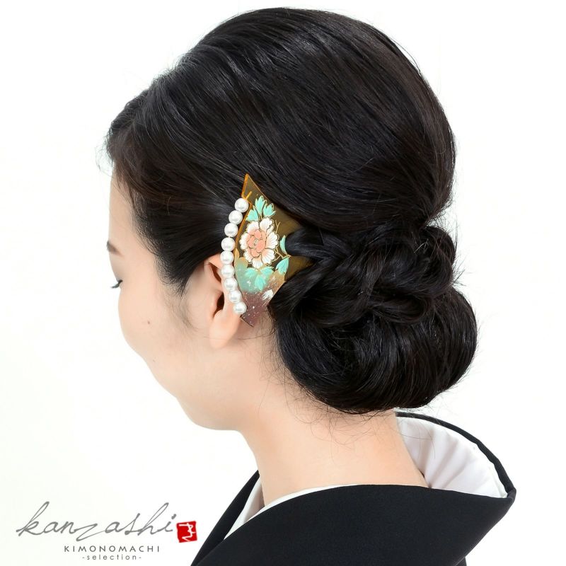 バチ型/銀杏型のかんざしです。訪問着、留袖、色無地などのお着物に合わせて、結婚式、パーティーなどのフォーマルな場面に。