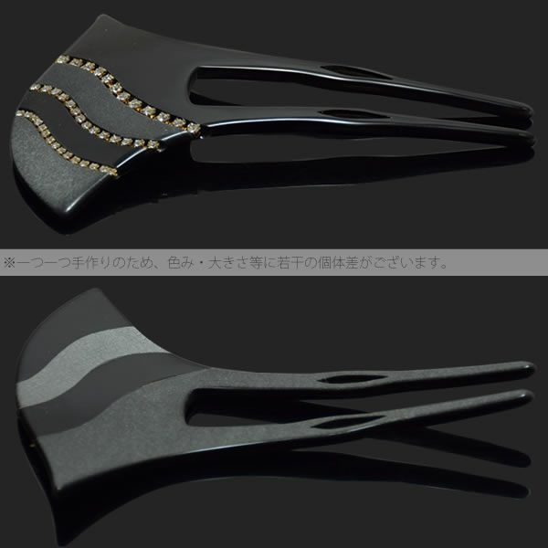 6. 礼装向けかんざし「黒色 ラインストーン」銀杏型 フォーマル 和ピン 礼装かんざし (CM473黒)【メール便不可】<H>