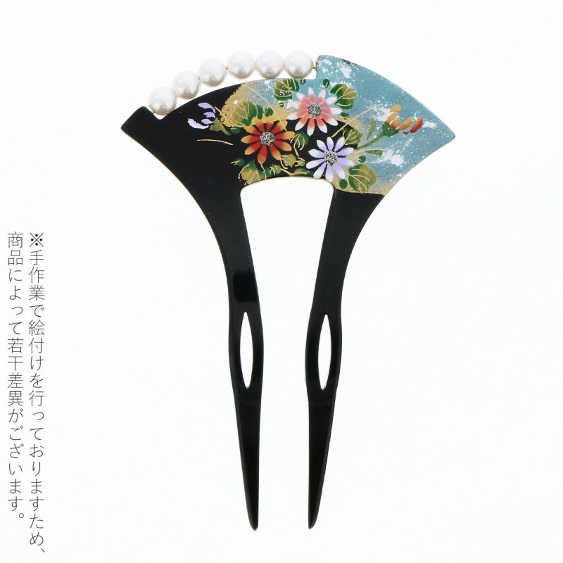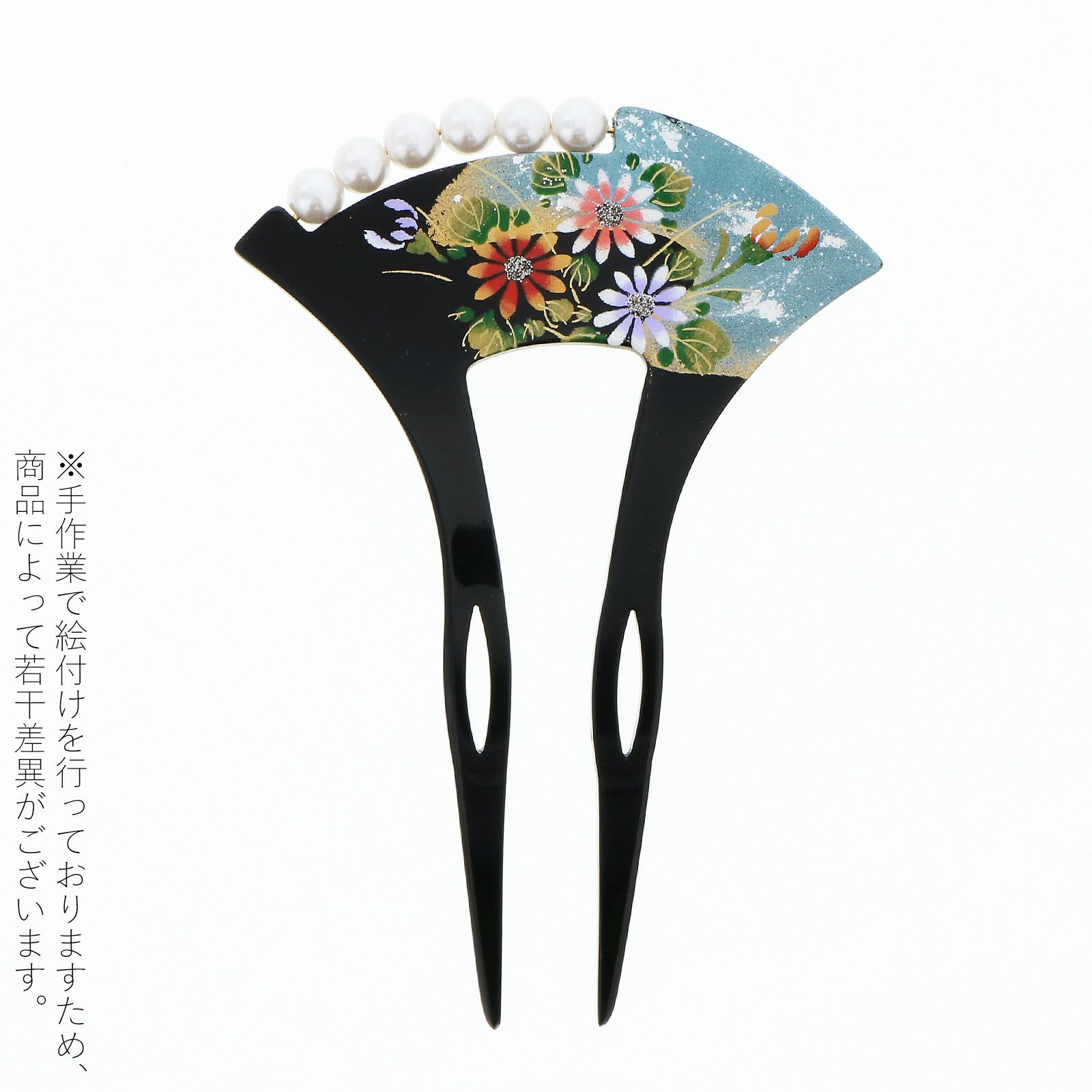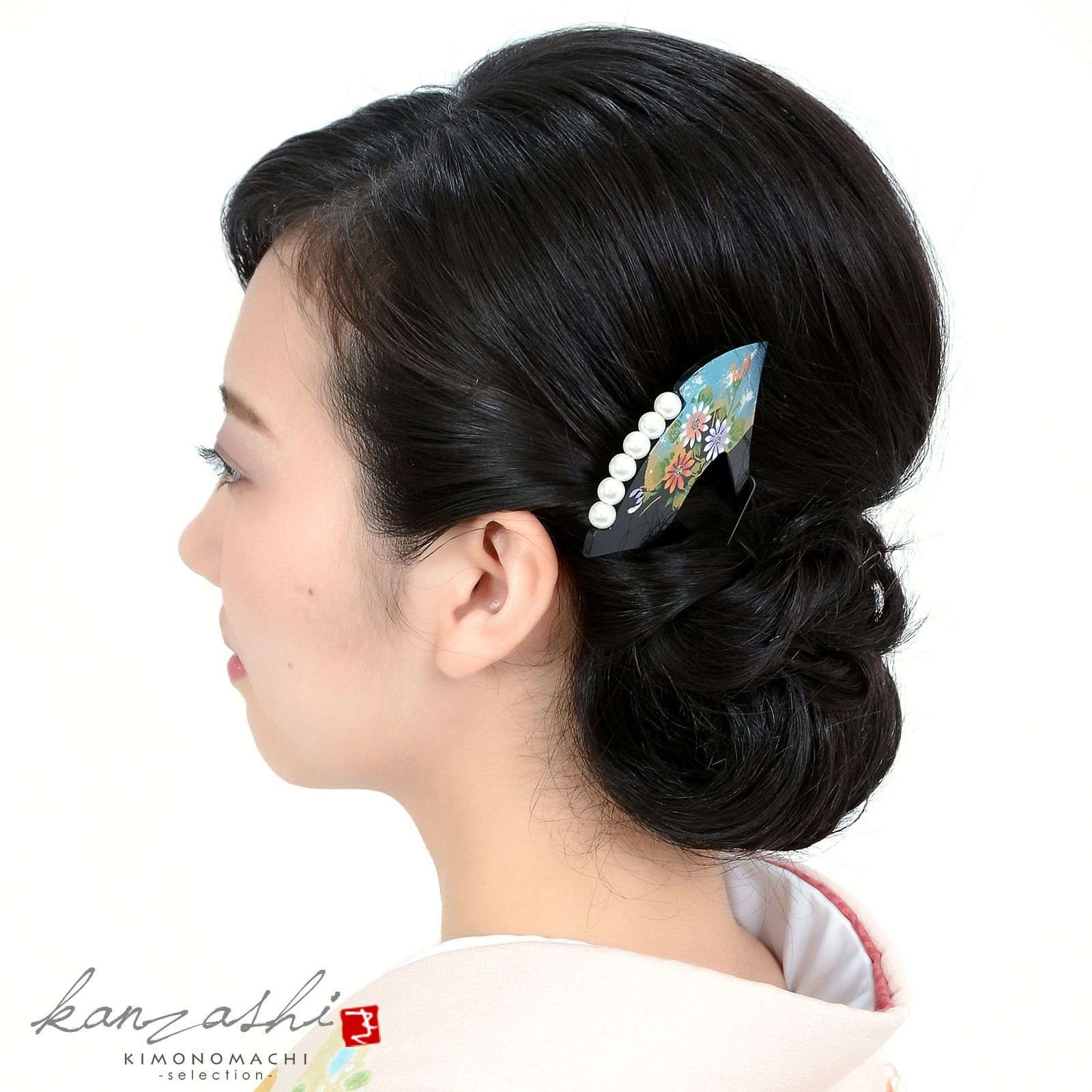 かんざし バチ型 「黒地 パール 小菊 #804」 銀杏型 高級 簪 礼装用 フォーマル着物 和装 留袖 黒留袖 訪問着 色無地 結婚式 パーティー 【メール便不可】<H>