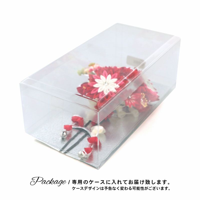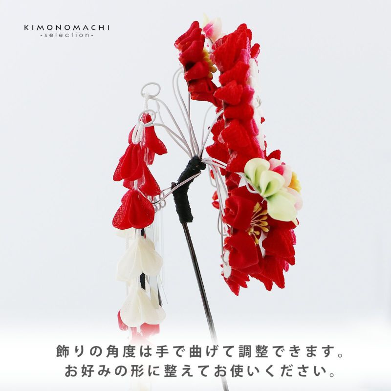 【Prices down5】つまみ細工髪飾り 「赤色×赤ピンク つまみのお花、房飾り」 成人式 卒業式 振袖 簪 前撮り ヘアアクセサリー【メール便不可】ss2512wkk40