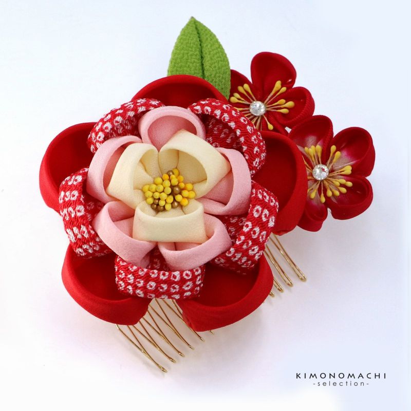 3. 【Prices down4】髪飾り 成人式 卒業式 「赤色 ふんわりつまみのお花」 振袖 お花髪飾り 前撮り 結婚式 レトロ モダン ヘアアクセサリー 日本製【メール便不可】ss2512wkk45