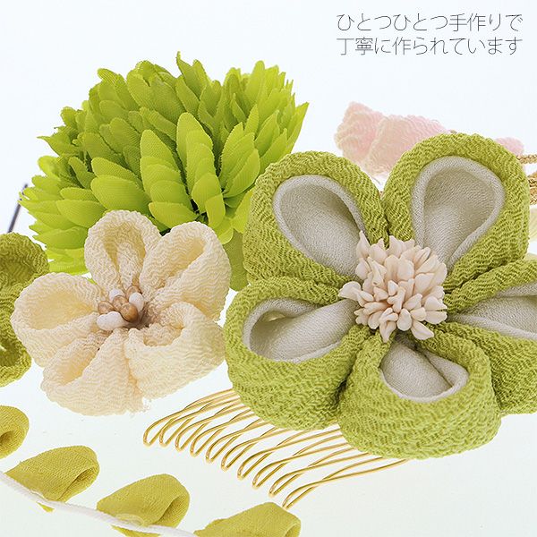 (卒業式応援最大70%OFF 2/5迄)【Prices down4】振袖髪飾り2点セット「抹茶色のつまみ、お花」つまみ細工かんざし 成人式の振袖、卒業式の袴にも 前撮り、成人式、結婚式の振袖に 振袖髪飾り お花髪飾り (1691)【メール便不可】<H>ss2512wkk40