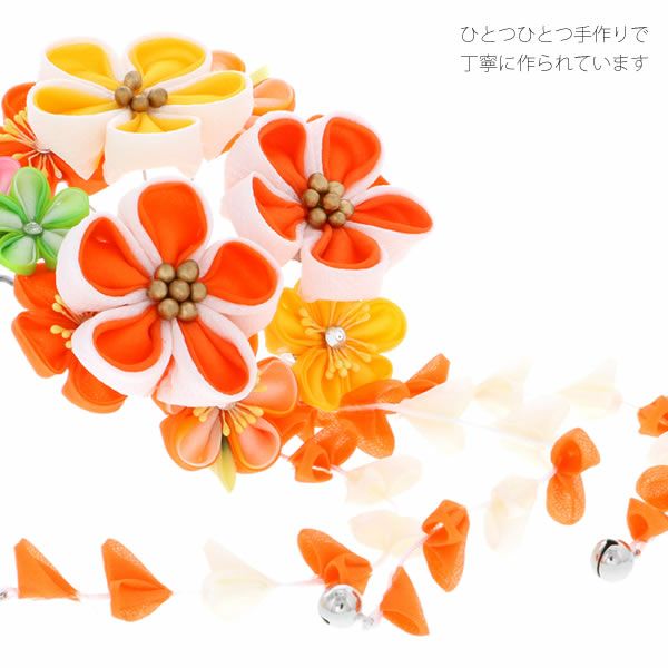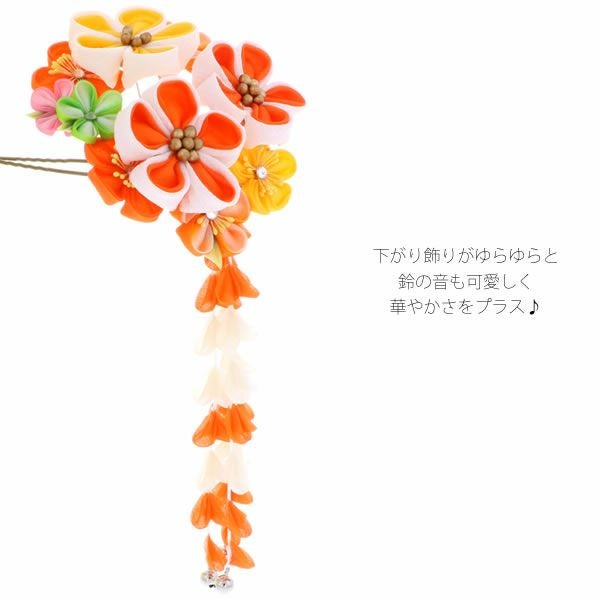 (卒業式応援75%SALE 3/5迄)【Prices down5】振袖髪飾り「オレンジ系のつまみのお花」つまみ細工かんざし 成人式の振袖、卒業式の袴にも 前撮り、成人式、結婚式の振袖に お花髪飾り (No.1100)【メール便不可】ss2512wkk35