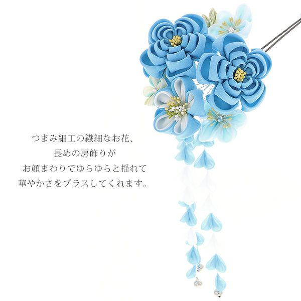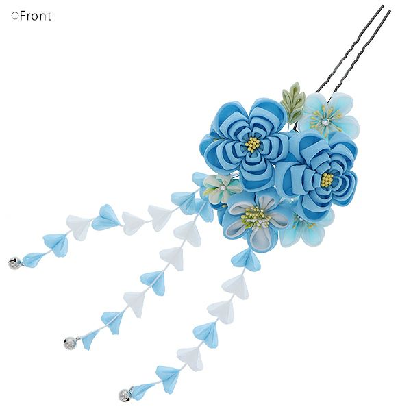 振袖髪飾り単品「水色 つまみのお花」つまみ細工かんざし 振袖髪飾り 髪飾り 十三詣り、卒業式の袴にも 簪 (No.1133)【メール便不可】<H>ss2512wkk10