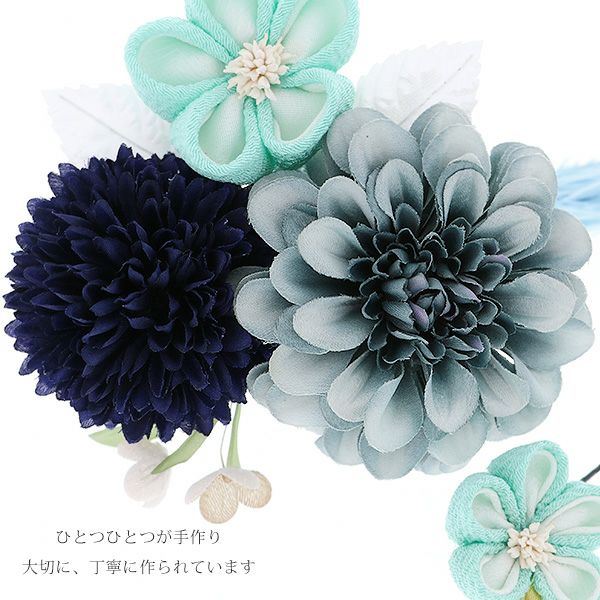 (卒業式応援最大70%OFF 2/5迄)【Prices down5】振袖髪飾り2点セット「ブルーのお花、つまみのお花、房飾り」つまみ細工髪飾り 振袖髪飾り 華やか髪飾り コーム お花髪飾り (1760)【メール便不可】ss2512wkk25