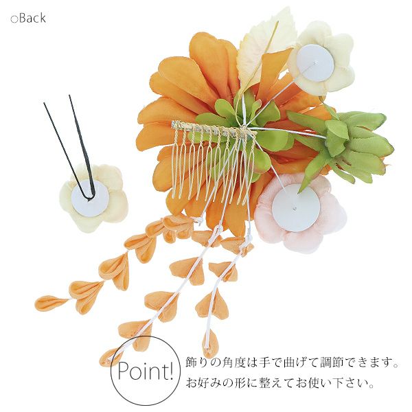 (卒業式応援最大70%OFF 2/5迄)【Prices down4】振袖髪飾り2点セット「オレンジ色のお花、下がり飾り」つまみ細工髪飾り 振袖髪飾り 華やか髪飾り コーム お花髪飾り (1798)【メール便不可】ss2512wkk15