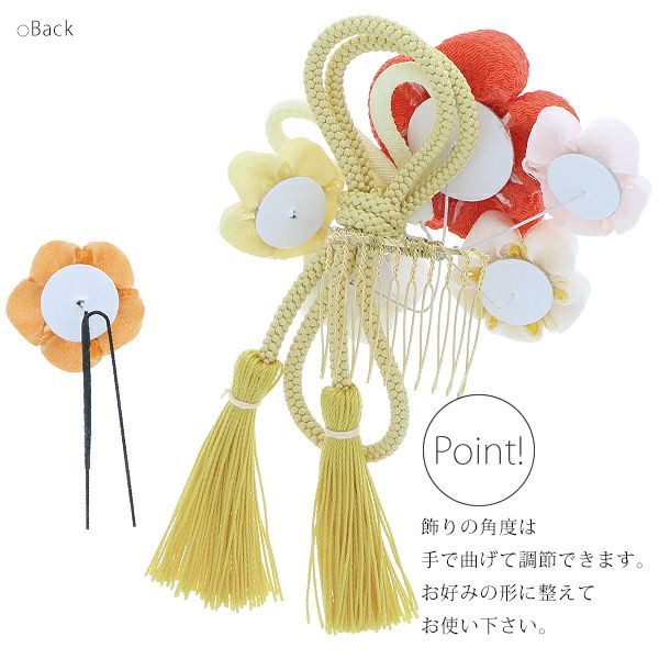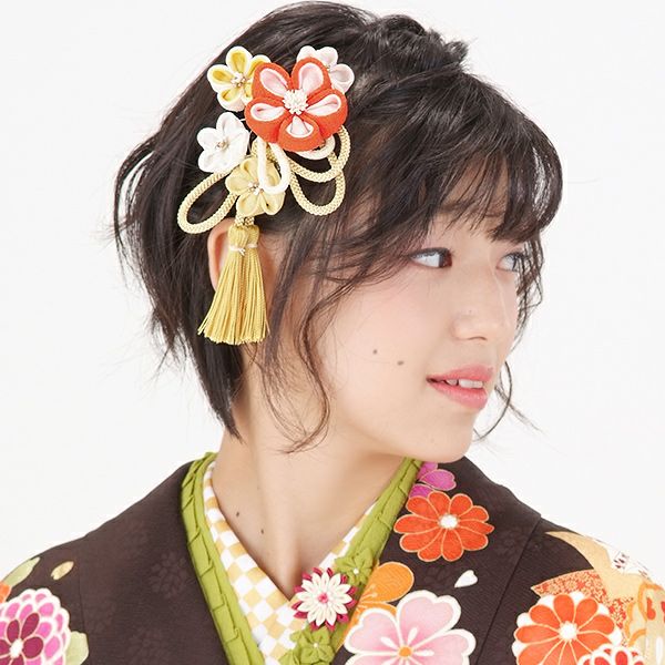 (卒業式応援最大70%OFF 2/5迄)【Prices down4】振袖髪飾り2点セット「オレンジ、イエローのつまみのお花、組紐、房飾り」つまみ細工髪飾り 振袖髪飾り 華やか髪飾り コーム お花髪飾り (1795)【メール便不可】ss2512wkk15