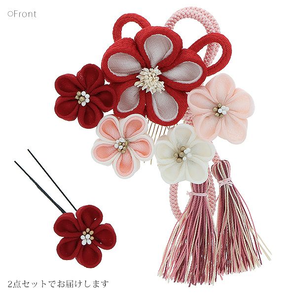 (卒業式応援最大70%OFF 2/5迄)振袖髪飾り2点セット「赤、ピンクのつまみのお花、組紐、房飾り」つまみ細工髪飾り 振袖髪飾り 華やか髪飾り コーム お花髪飾り (1795)【メール便不可】<H>