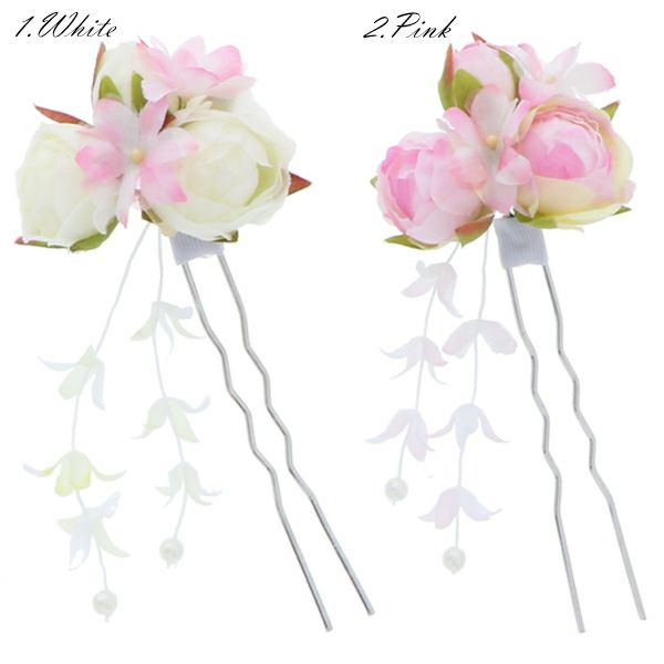 【Prices down2】お花髪飾り「ホワイト、ピンク、ローズ」お花髪飾り 簪 浴衣髪飾り 浴衣かんざし D-J839【メール便不可】ss2512wkk35