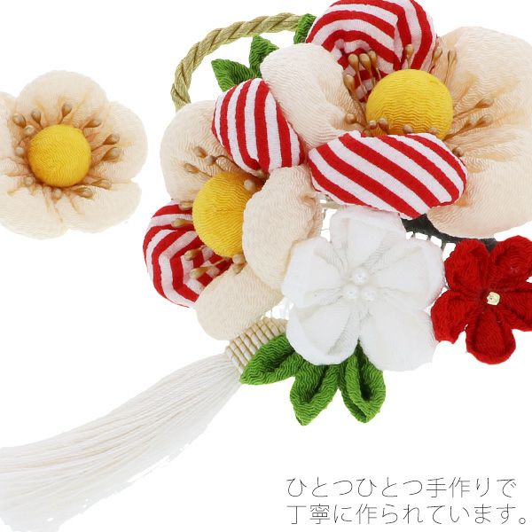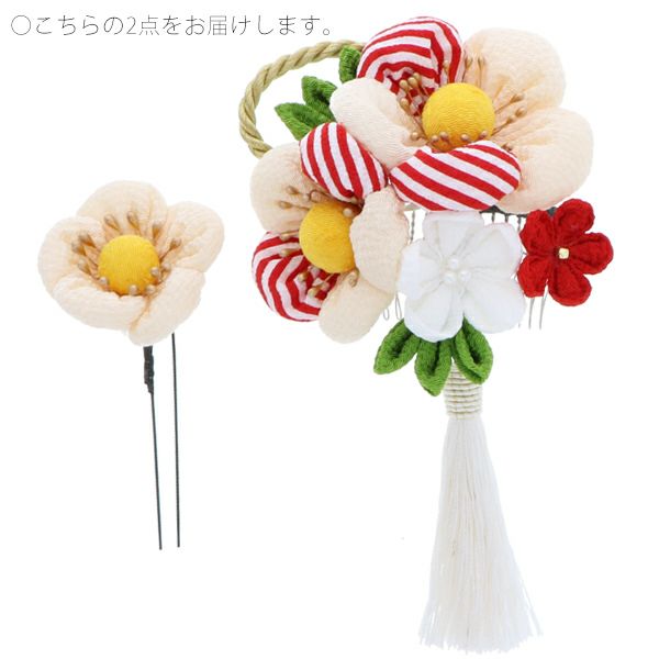 (卒業式応援最大70%OFF 2/5迄)【Prices down5】つまみ細工髪飾り2点セット「白色 ふっくらつまみのお花」髪飾り 成人式、結婚式 振袖髪飾り お花髪飾り 房飾り No.52405 白【メール便不可】ss2512wkk25