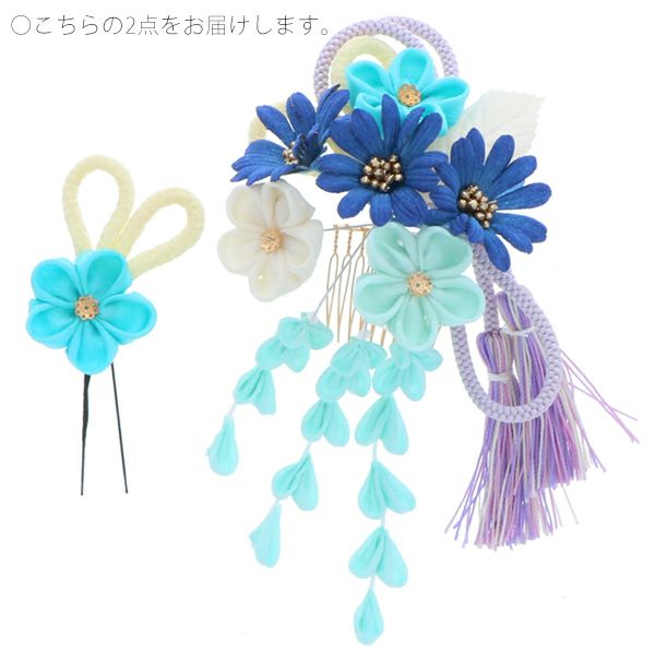 (卒業式応援最大70%OFF 2/5迄)【Prices down2】つまみ細工、お花髪飾り2点セット「ブルー つまみのお花、房飾り」髪飾り 成人式、結婚式 振袖髪飾り お花髪飾り 房飾り No.1872【メール便不可】<H>ss2512wkk35