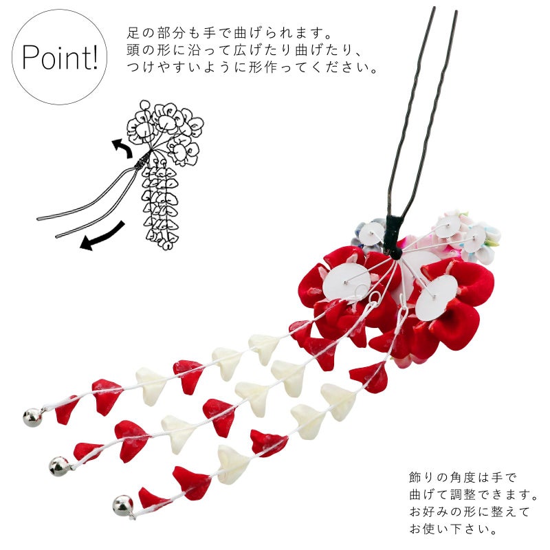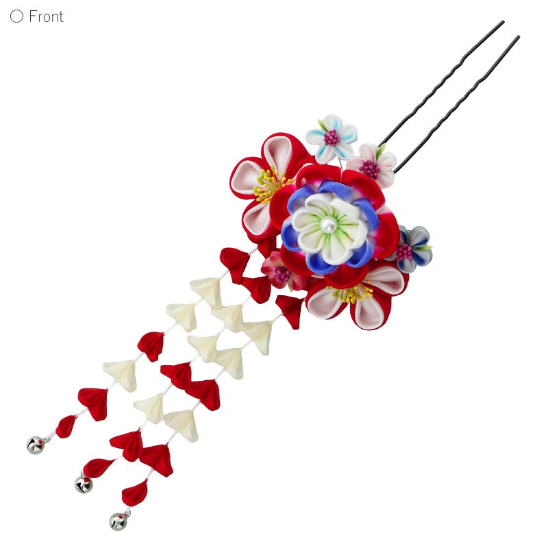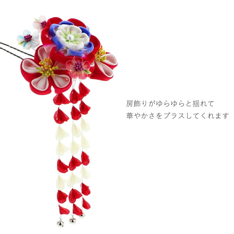 (卒業式応援75%SALE 2/19迄)【Prices down3】髪飾り 成人式 「つまみ細工かんざし 瑠璃色×赤、つまみの八重梅、房下がり」 簪 振袖用髪飾り お花髪飾り 卒業式 結婚式 着物 【メール便不可】ss2512wkk35