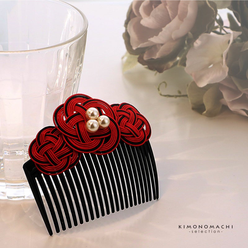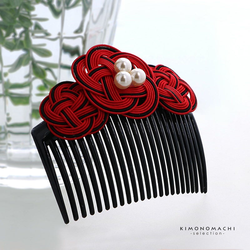 (卒業式応援75%SALE 2/19迄)【Prices down3】水引きコーム 髪飾り 「赤×黒色」 普段使い カジュアル 振袖 ヘアアクセサリー (KK-8) 日本製 【メール便不可】ss2512wkk35