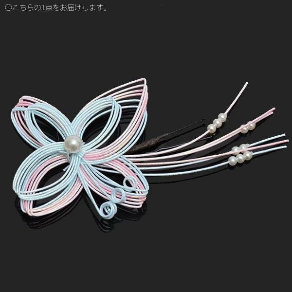 (卒業式応援75%SALE 2/19迄)水引き髪飾り「水色×ピンク」ポイント髪飾り 振袖、袴に ヘアアクセサリー ヘアアレンジ Uピン髪飾り (UP-12)【メール便不可】ss2203wkk10<H>