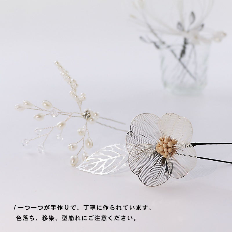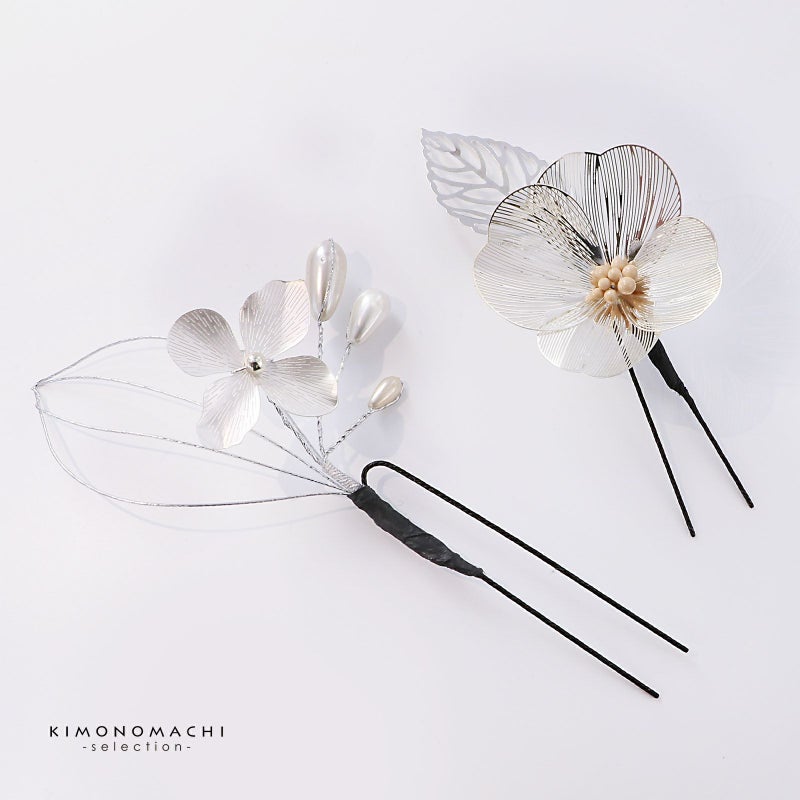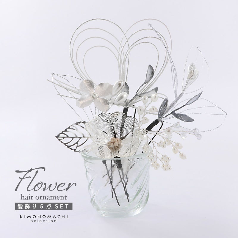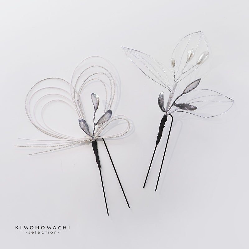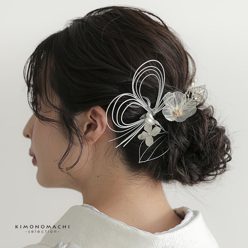 (卒業式応援75%SALE 2/19迄)成人式 髪飾り 卒業式 Uピンの5点セット「花枝に水引 シルバー」日本製 水引き Uピン 振袖用髪飾り 結婚式 前撮り 後撮り 着物【メール便不可】