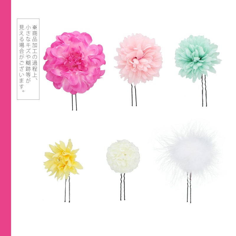 お花とマムのUピンの髪飾り6点セットです。振袖などの華やかなお着物に合わせて、成人式、結婚式などの晴れやかな席に。