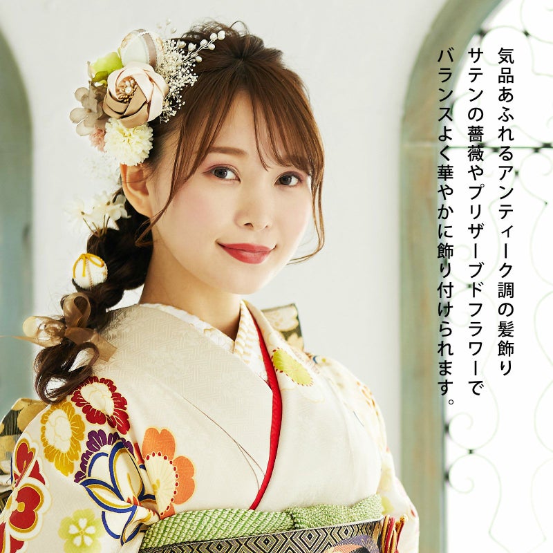振袖にぴったりのかわいくて華やかな髪飾りです。前撮り撮影、成人式、結婚式にはもちろん、卒業式の袴にも。