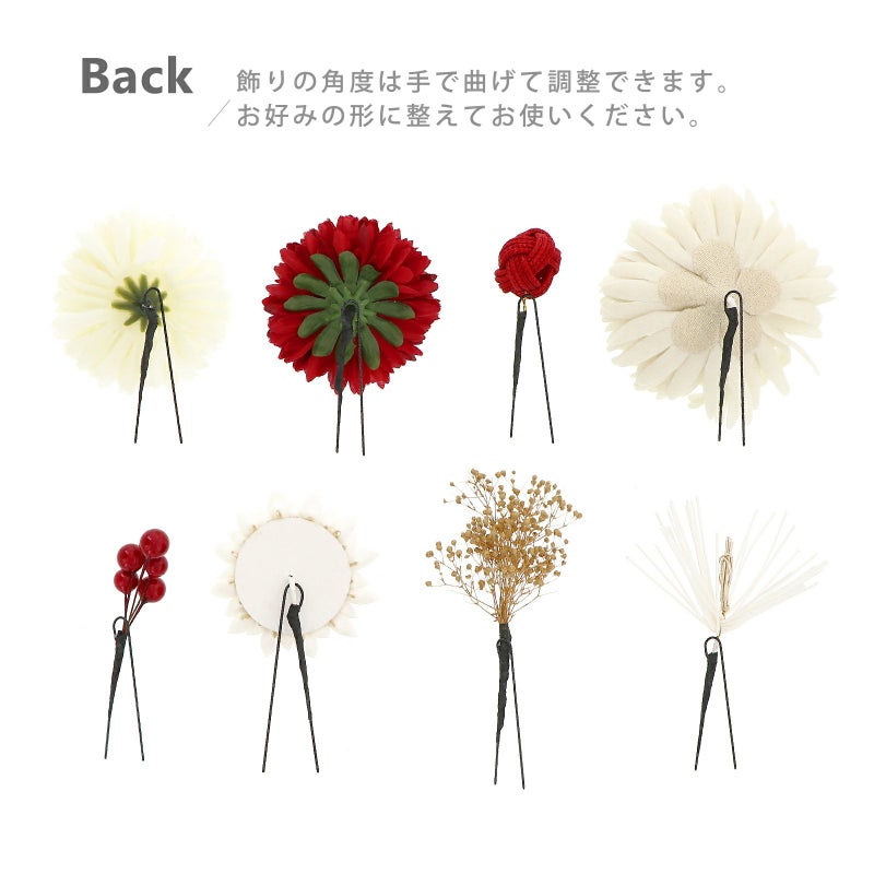 つまみ菊:直径約6.5cm、Uピン:長さ約7cm