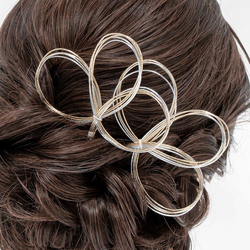 (卒業式応援75%SALE 2/19迄)水引き 髪飾り 2点セット「水引輪飾り、三つ葉 金銀 #1531」日本製 Uピン髪飾り 成人式、卒業式に ヘアアレンジ ポイント髪飾り【メール便不可】