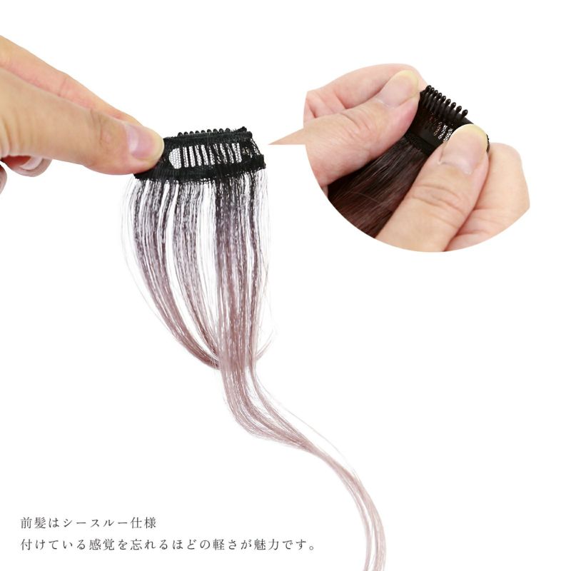 「分けて使える」左右のセパレート前髪と後ろ髪エクステの3点セットなので、ワンレンさんでもぱっつんさんでも、どんな髪型でも装着可能。