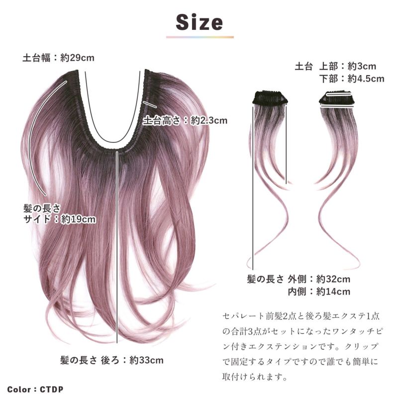 【商品内容】左右のセパレート前髪、後ろ髪エクステの計3点