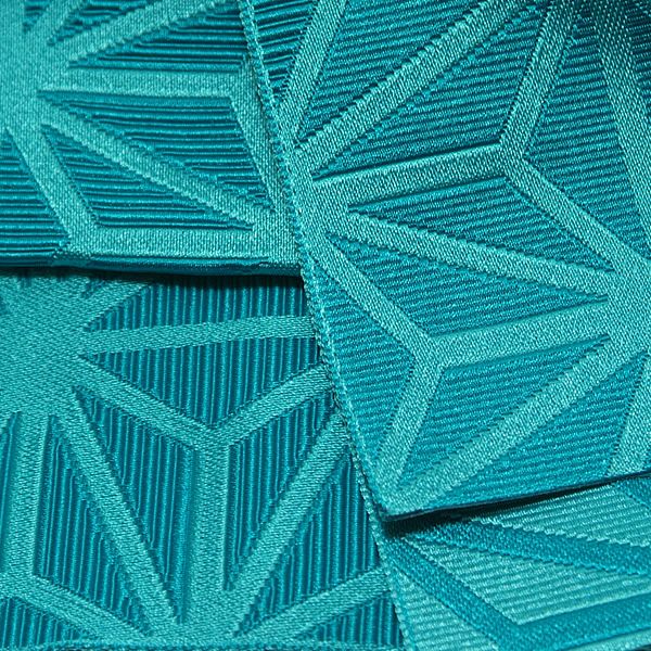 【カラー】鮮やかな青緑色の、コバルトブルーの帯です。凛とした色味が、暗色系の浴衣によく映えます。