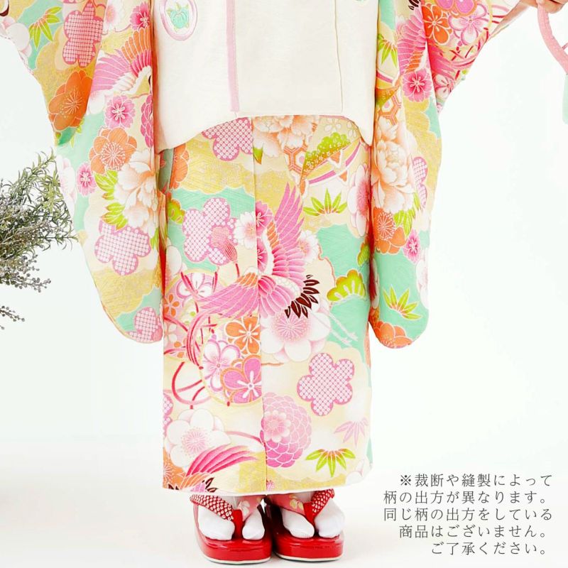 ※着物はすでに身上げ、肩上げが施されています。3歳のお祝いをするお子様の平均身長に合わせて、身長95cmぐらいのお子様がぴったりと着ていただけるサイズになっています。もしそれでは大きい、もしくは小さいようでしたら身上げ、肩上げを一度解いていただいて、お子様に合わせて、再度縫い上げてください。