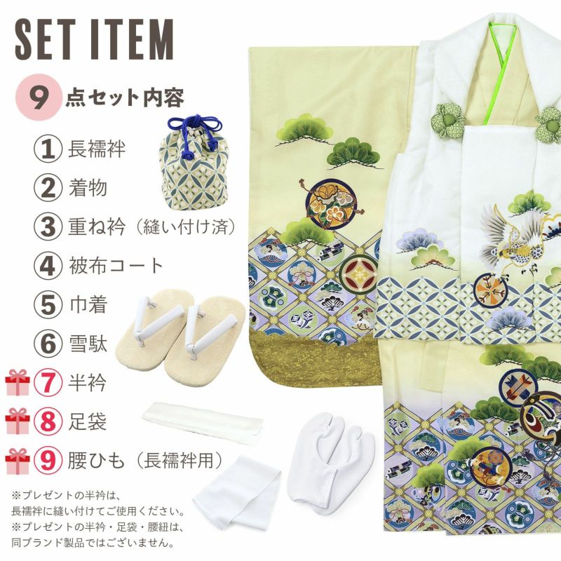 ※プレゼントの半衿・足袋・腰ひもは、同ブランドではございません。