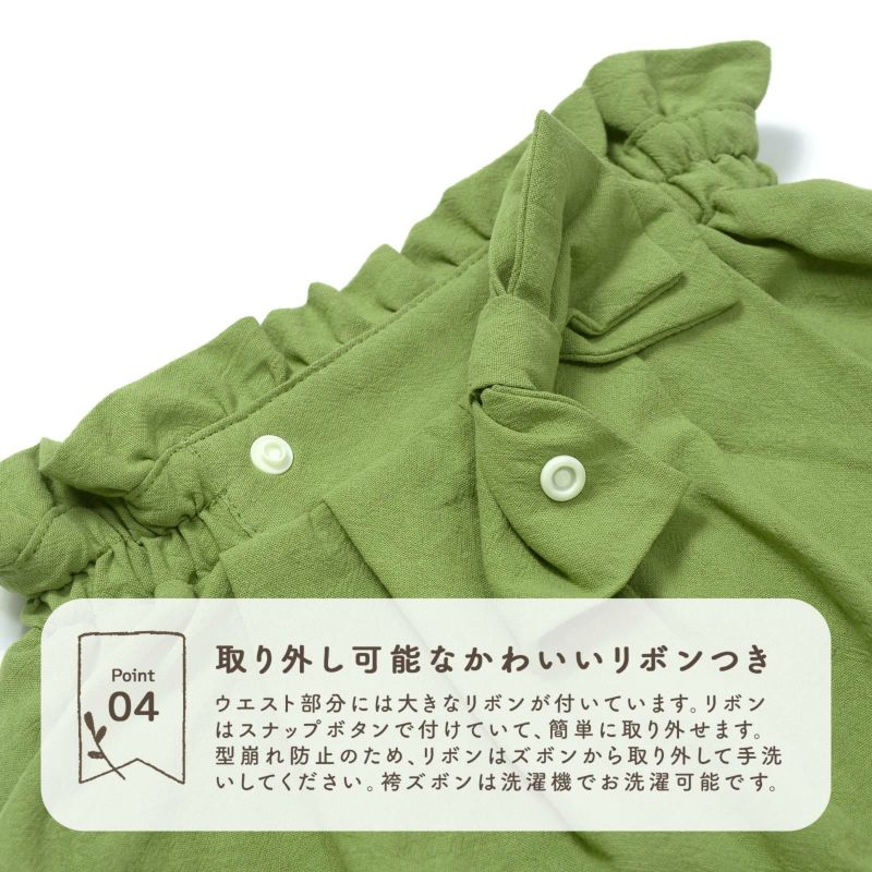 お尻周りがゆったりしたサルエルタイプなので、動きやすく活発なお子様でも安心して履いていただけます。