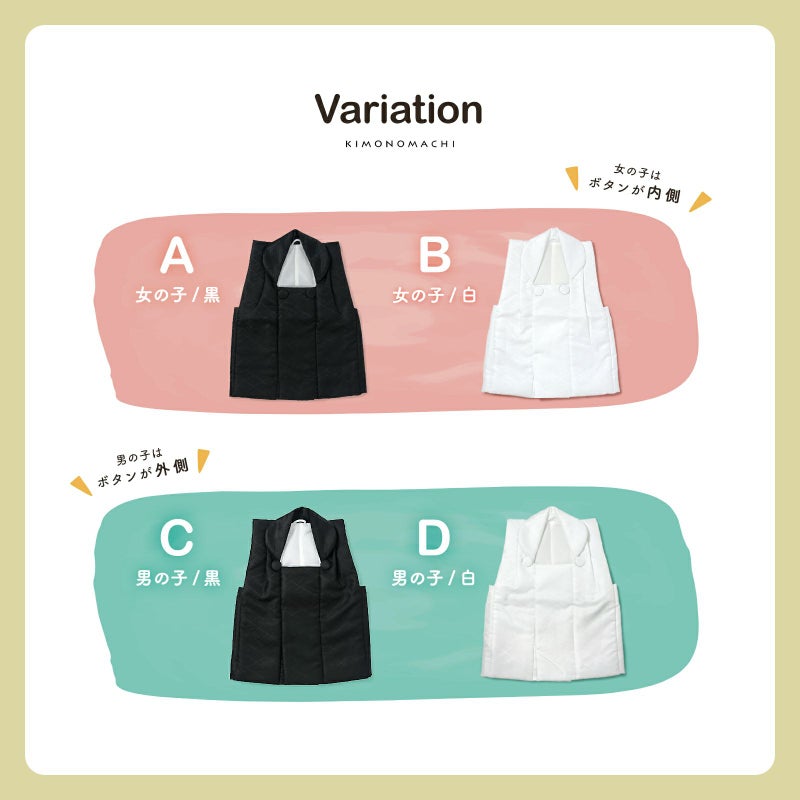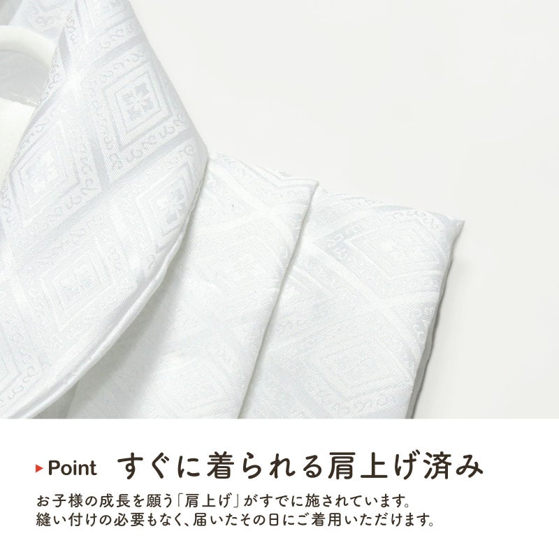 D.男の子 白:白。入れ子菱に花菱の地模様が織り出されています。ボタンは外側。