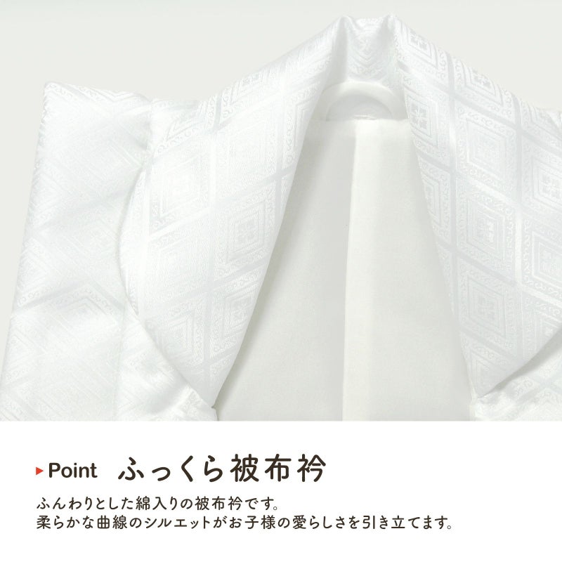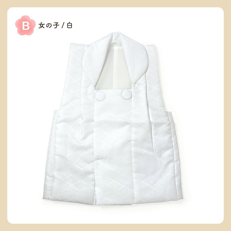 B.女の子 白:白。入れ子菱に花菱の地模様が織り出されています。ボタンは内側。