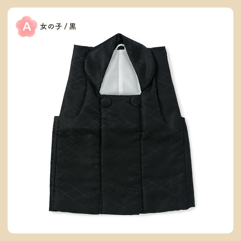 A.女の子 黒:黒。入れ子菱に花菱の地模様が織り出されています。ボタンは内側。