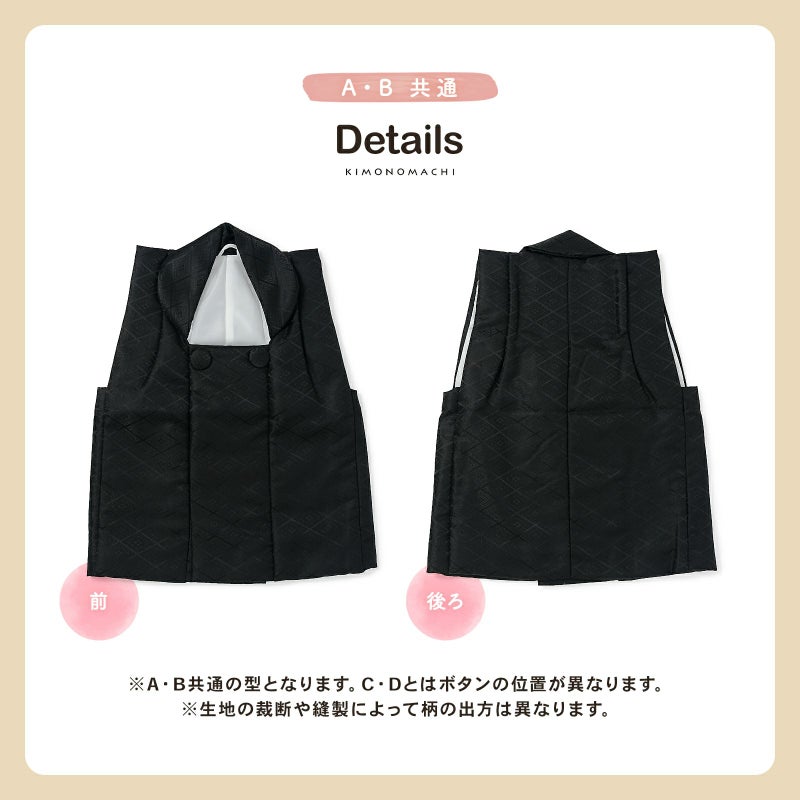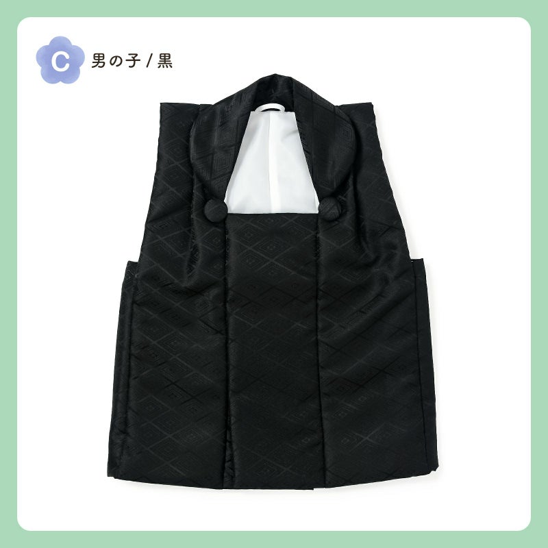 C.男の子 黒:黒。入れ子菱に花菱の地模様が織り出されています。ボタンは外側。