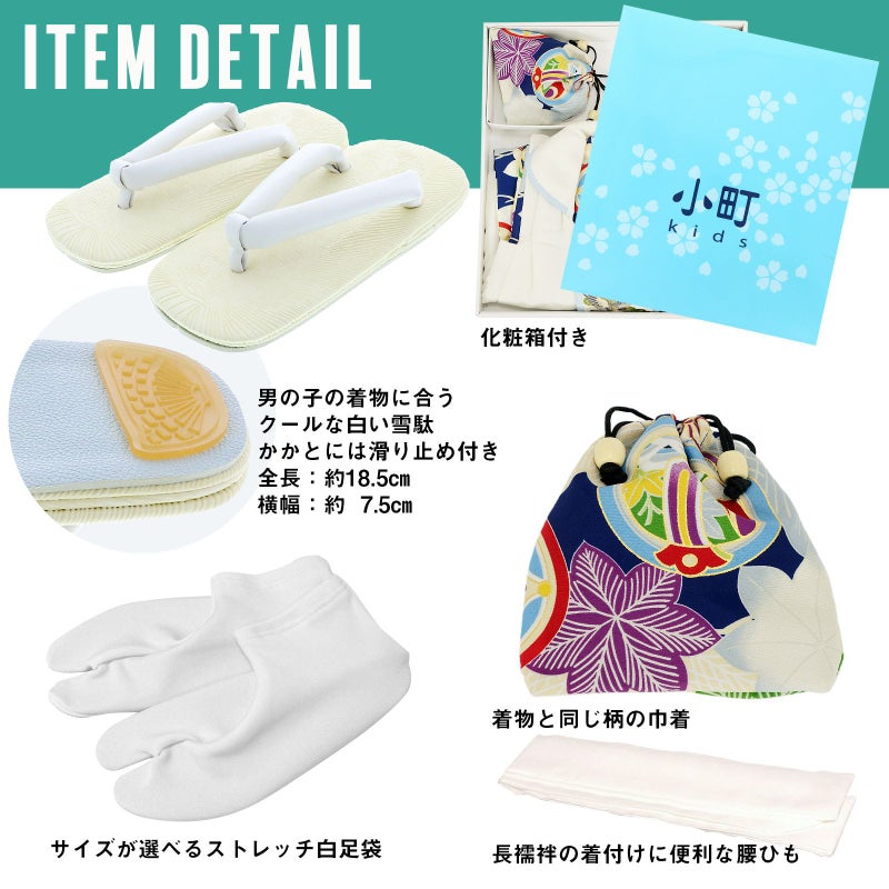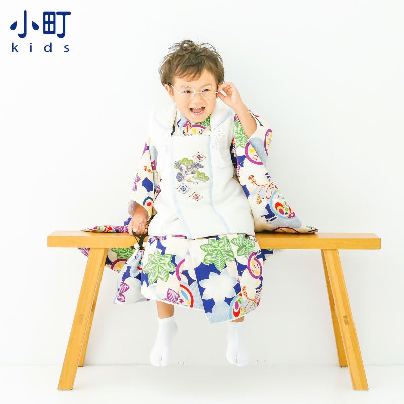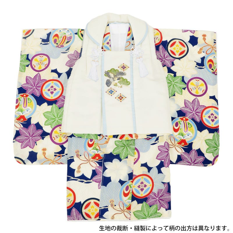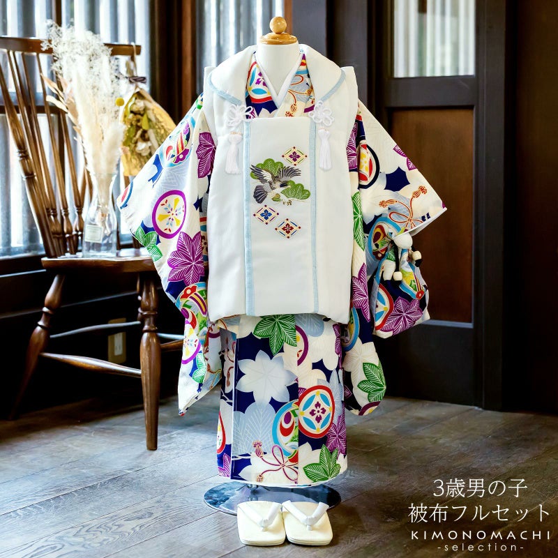 4. 七五三 着物 3歳 男の子 ブランド被布セット 小町 「楓、丸紋に小槌」 三歳男児被布セット 子供着物 フルセット 三才のお祝い着 3才向け 【送料無料】 【メール便不可】