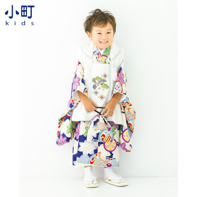 5. 七五三 着物 3歳 男の子 ブランド被布セット 小町 「楓、丸紋に小槌」 三歳男児被布セット 子供着物 フルセット 三才のお祝い着 3才向け 【送料無料】 【メール便不可】