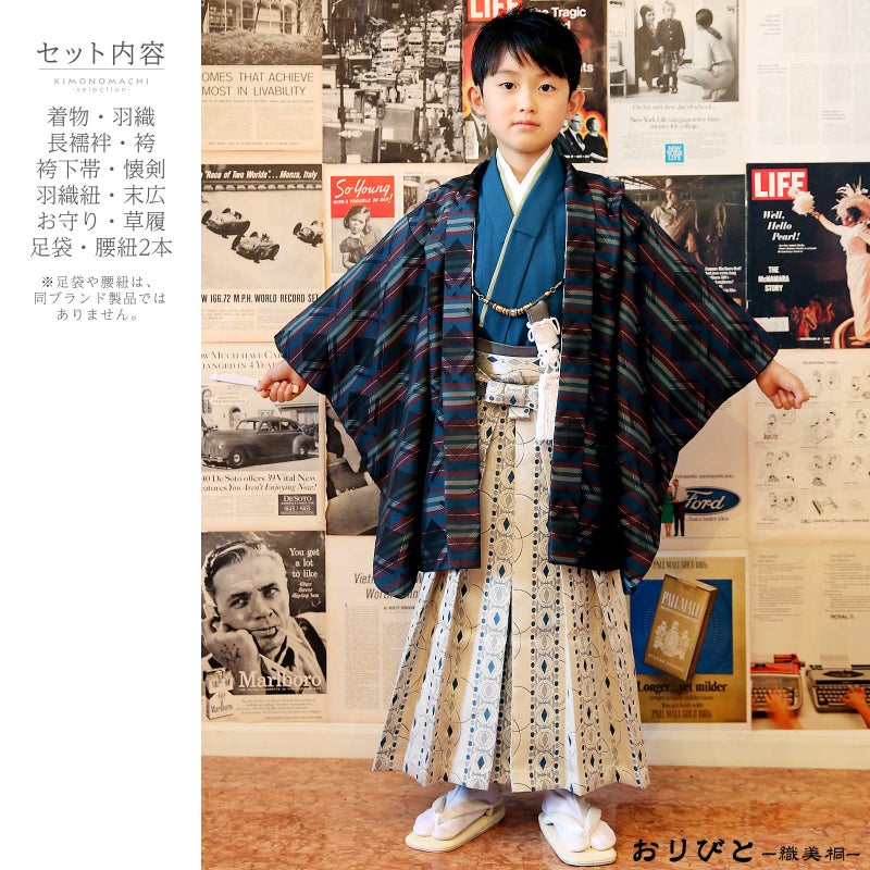 3歳~5歳の男の子の七五三に。おりびとー織美桐ーブランドの羽織袴セットです。