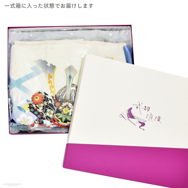 【商品内容】長襦袢・着物・羽織・袴・袴下帯・懐剣・お守り・羽織紐・末広(扇子)・雪駄・足袋(プレゼント)・半衿(プレゼント)・腰ひも2本(プレゼント)の計13点