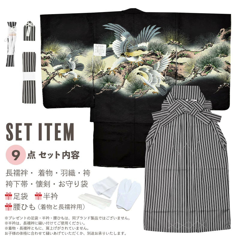 5歳、7歳の男の子の七五三に。5才、6才の卒園式に。着付けに必要なものが揃ったフルセットでお届けいたします。七五三(3才、数えの5才、満5才)、端午の節句、お正月に!