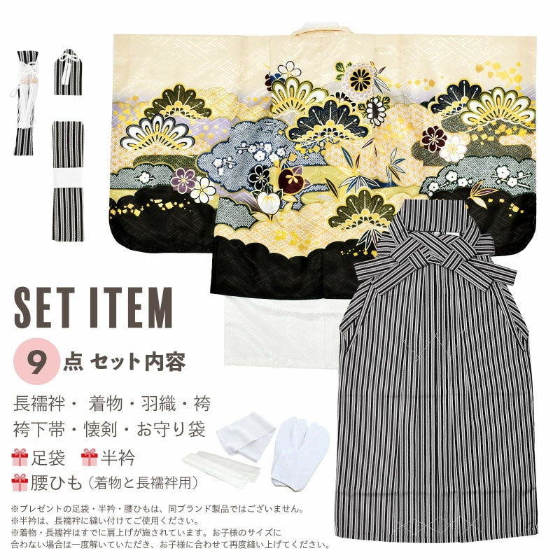 5歳、7歳の男の子の七五三に。5才、6才の卒園式に。着付けに必要なものが揃ったフルセットでお届けいたします。七五三(3才、数えの5才、満5才)、端午の節句、お正月に!
