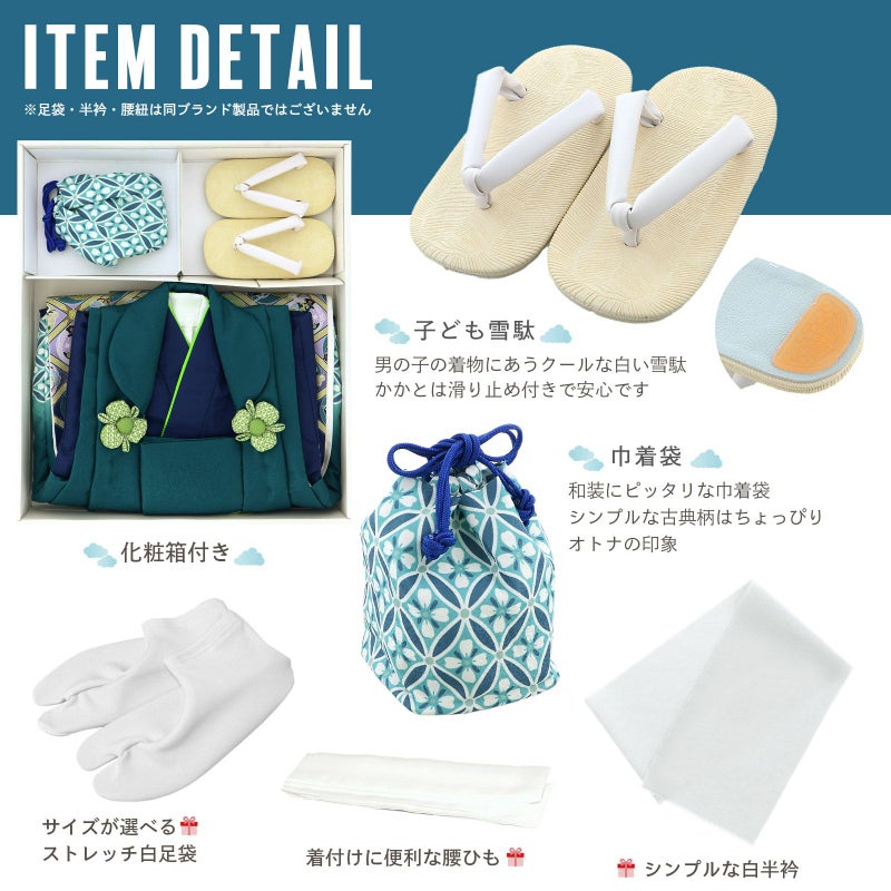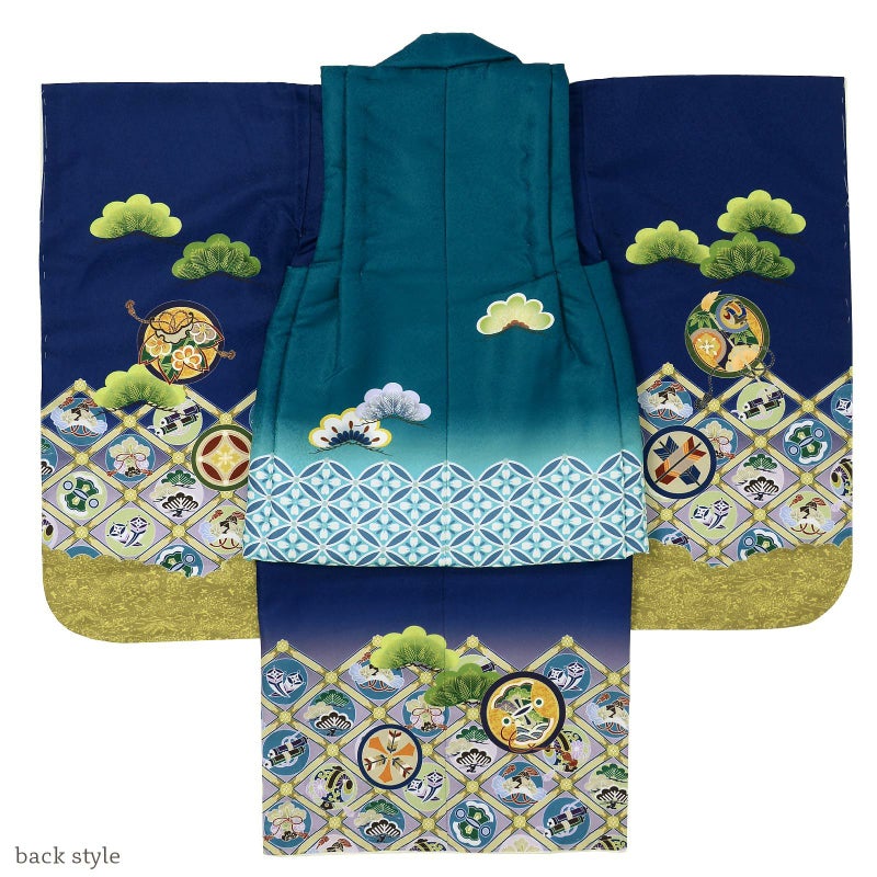 5. 【Prices down2】七五三 着物 3歳 男の子 被布セット「孔雀緑 鉄紺色、格天井に宝尽くし」三歳男児被布セット 子供着物 フルセット 三才のお祝い着 3才向け【メール便不可】ss2509kkd15