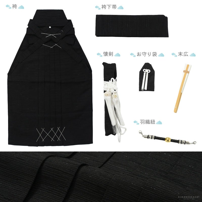 【商品内容】長襦袢・着物・羽織・袴・袴下帯・懐剣・お守り・羽織紐・半衿・末広(扇子)・腰ひも2本(プレゼント)・足袋(プレゼント)の計12点