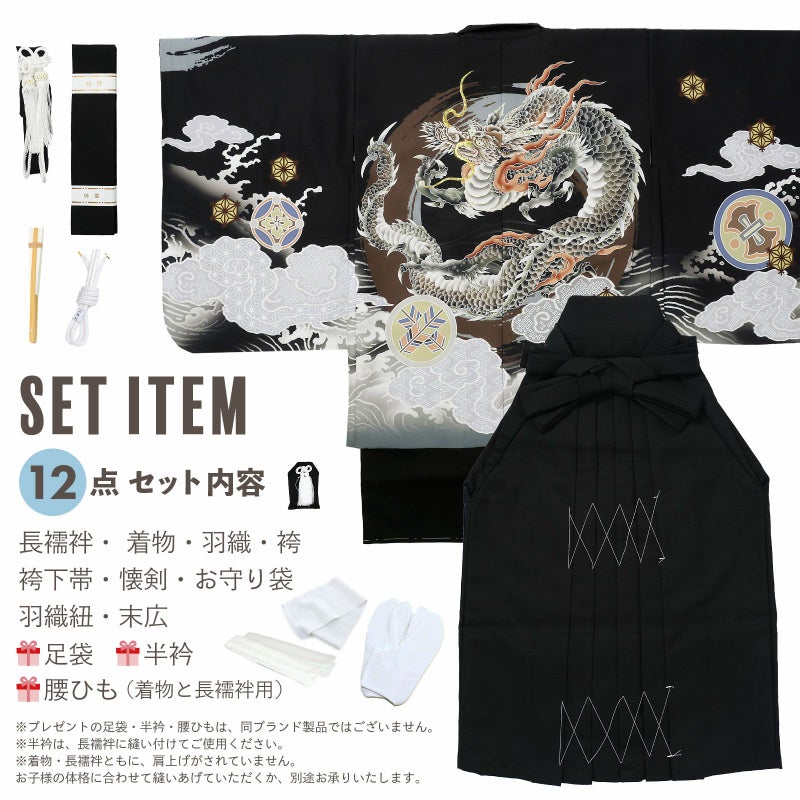 5歳、7歳の男の子の七五三に。5才、6才の卒園式に。着付けに必要なものが揃ったフルセットでお届けいたします。