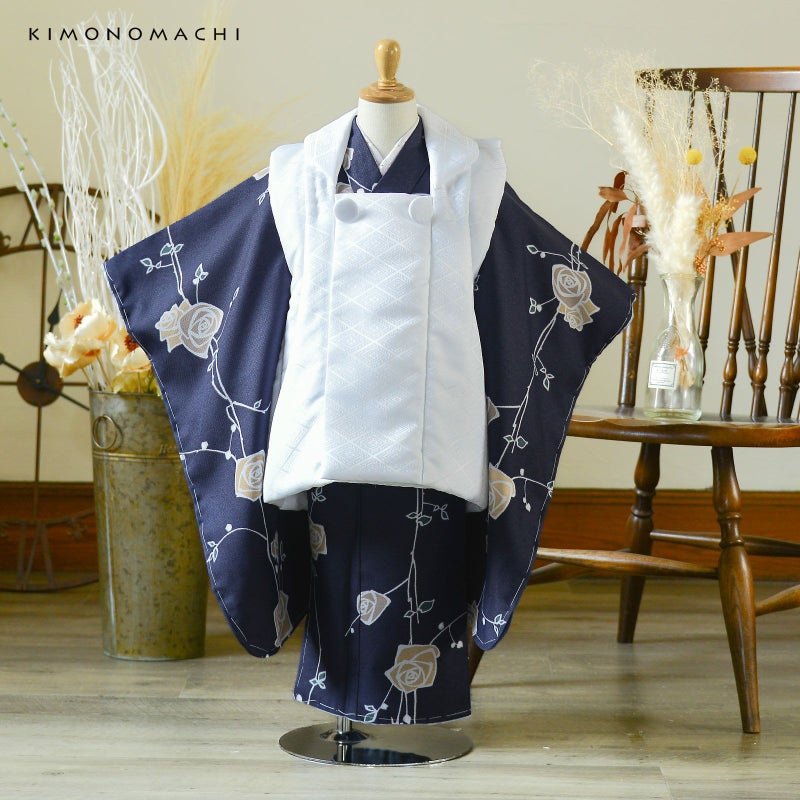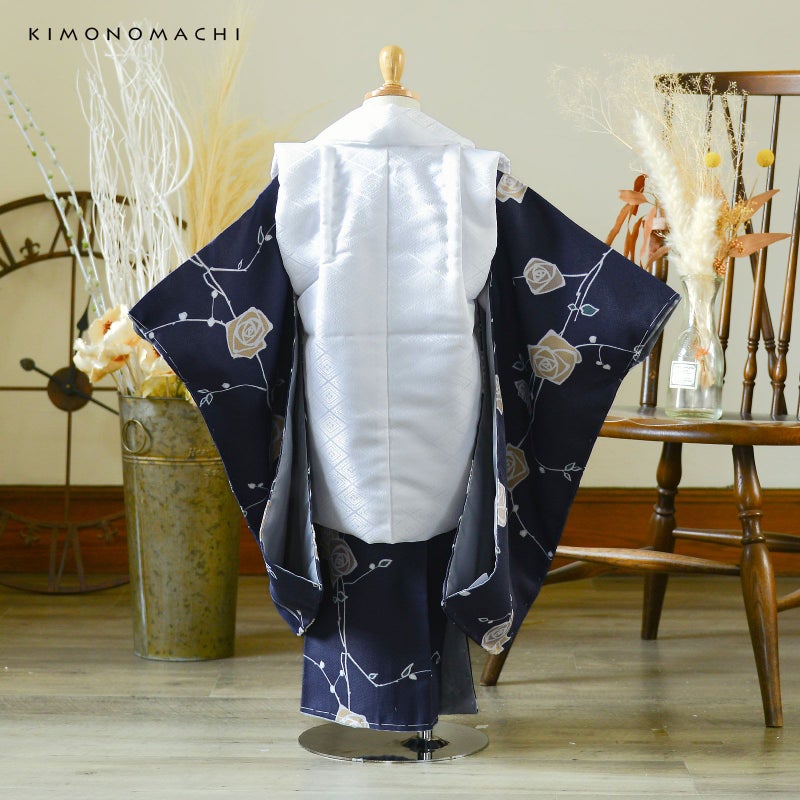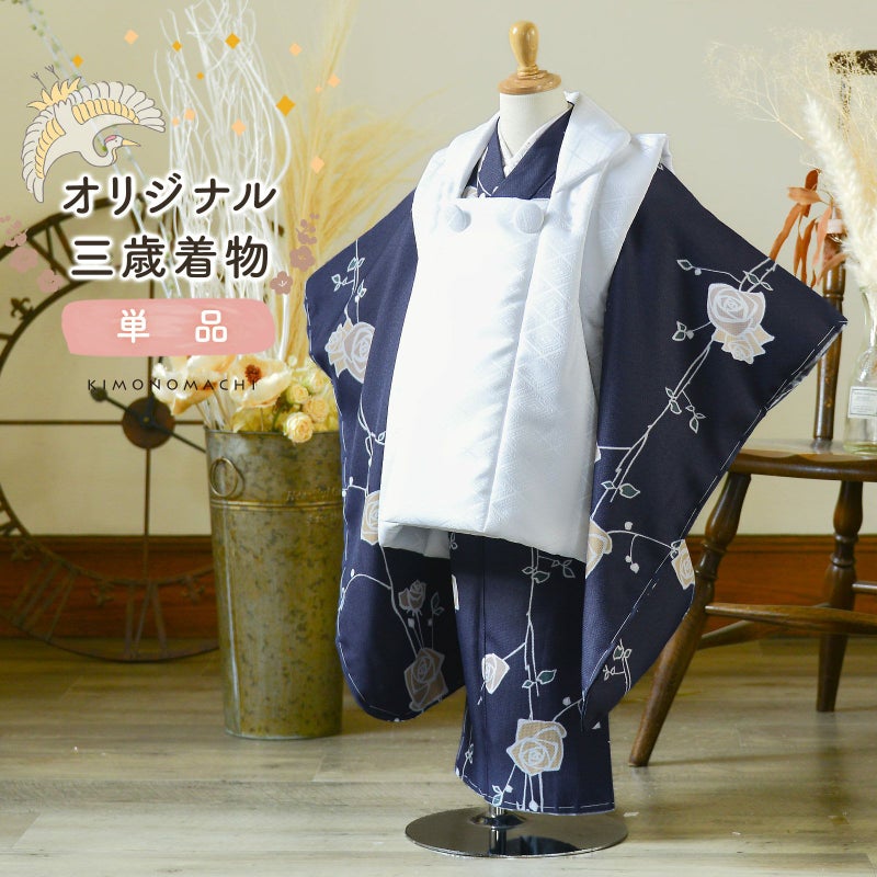 3. 七五三 3歳 着物 単品「ばら 墨紺色」子供着物 三才のお祝い着 3才向け 小紋 KIMONOMACHI オリジナル【メール便不可】