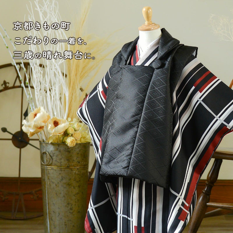 七五三 着物 3歳 男の子・女の子 被布コート 単品「黒 菱・白 菱」中綿入り KIMONOMACHI オリジナル 男の子用被布コート単品 女の子用被布コート単品 3才 男児用 女児用 三歳被布コート【メール便不可】