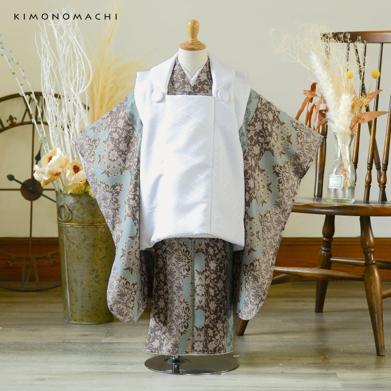 京都きもの町 こだわりの一着を、三歳の晴れ舞台に。 七五三 3歳 着物 単品「縞更紗 水色」子供着物 三才のお祝い着 3才向け 小紋 KIMONOMACHI オリジナル【メール便不可】