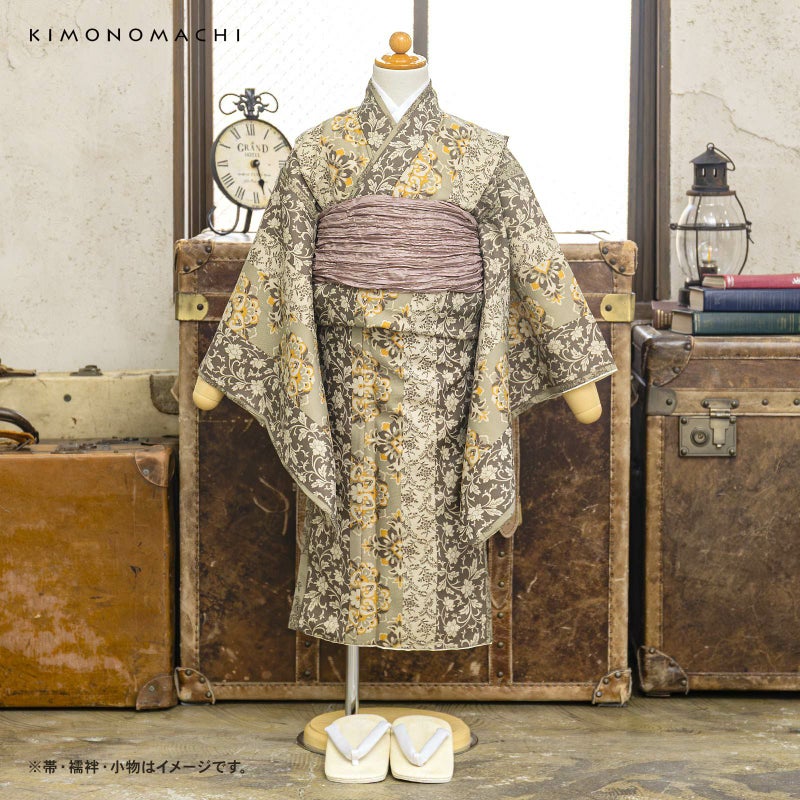 京都きもの町 こだわりの一着を、五歳の晴れ舞台に。卒業式や入学式の袴姿も 七五三 男の子 5歳 着物 単品「縞更紗 利休」5歳向け 5才 五歳 男児用 着物 子供着物 五才のお祝い着【メール便不可】
